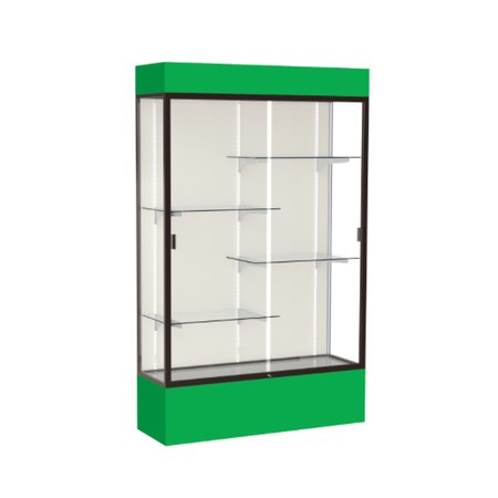 Spirit Kelly Green Display Case (Lighted), Plaque Fabric Back w/ Dark Bronze aluminum frame finish, 80"H x 48"W x 16"D (Item #: 3174pb-bz-kg-WD)