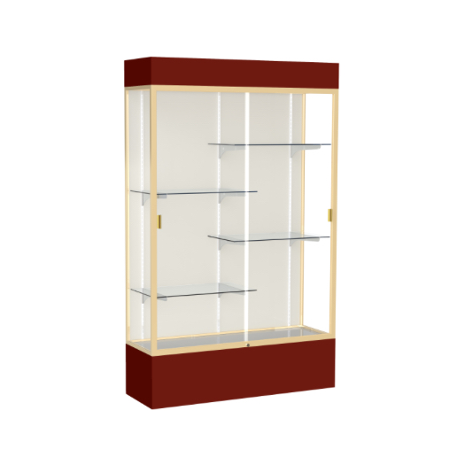 Spirit Maroon Display Case (Lighted), Plaque Fabric Back w/ Champagne aluminum frame finish, 80"H x 48"W x 16"D (Item #: 3174pb-gd-mn-WD)