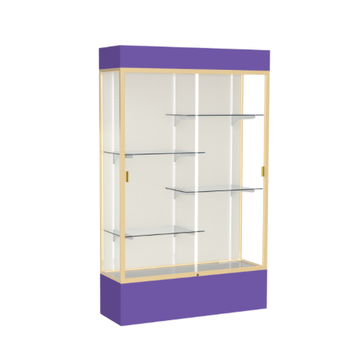 Spirit Purple Display Case (Lighted), Plaque Fabric Back w/ Champagne aluminum frame finish, 80"H x 48"W x 16"D (Item #: 3174pb-gd-pe-WD)