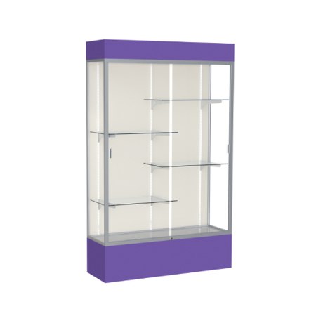 Spirit Purple Display Case (Lighted), Plaque Fabric Back w/ Satin Natural aluminum frame finish, 80"H x 48"W x 16"D (Item #: 3174pb-sn-pe-WD)