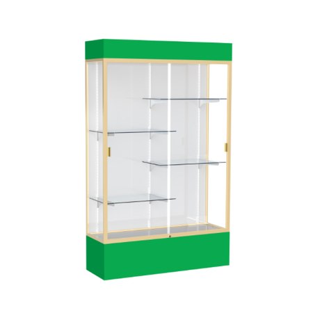 Spirit Kelly Green Display Case (Lighted), White Laminate Back w/ Champagne aluminum frame finish, 80"H x 48"W x 16"D (Item #: 3174wb-gd-kg-WD)