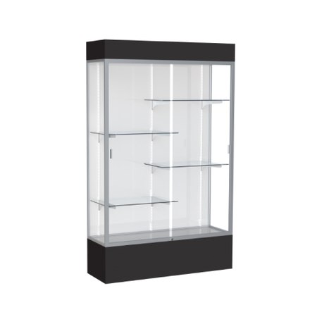 Spirit Black Display Case (Lighted), White Laminate Back w/ Satin Natural aluminum frame finish, 80"H x 48"W x 16"D (Item #: 3174wb-sn-bk-WD)