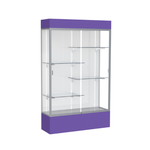 Spirit Purple Display Case (Lighted), White Laminate Back w/ Satin Natural aluminum frame finish, 80"H x 48"W x 16"D (Item #: 3174wb-sn-pe-WD)