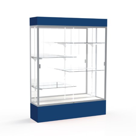 Spirit Navy Display Case (Lighted), Mirror Back w/ Satin Natural aluminum frame finish, 80"H x 60"W x 16"D (Item #: 3175mb-sn-ny-WD)