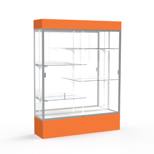 Spirit Orange Display Case (Lighted), Mirror Back w/ Satin Natural aluminum frame finish, 80"H x 60"W x 16"D (Item #: 3175mb-sn-or-WD)