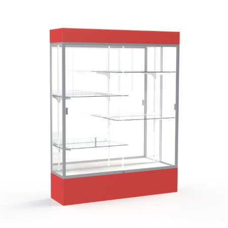 Spirit Red Display Case (Lighted), Mirror Back w/ Satin Natural aluminum frame finish, 80"H x 60"W x 16"D (Item #: 3175mb-sn-rd-WD)