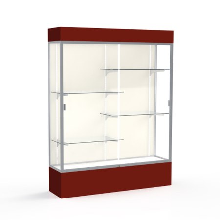 Spirit Maroon Display Case (Lighted), Plaque Fabric Back w/ Satin Natural aluminum frame finish, 80"H x 60"W x 16"D (Item #: 3175pb-sn-mn-WD)
