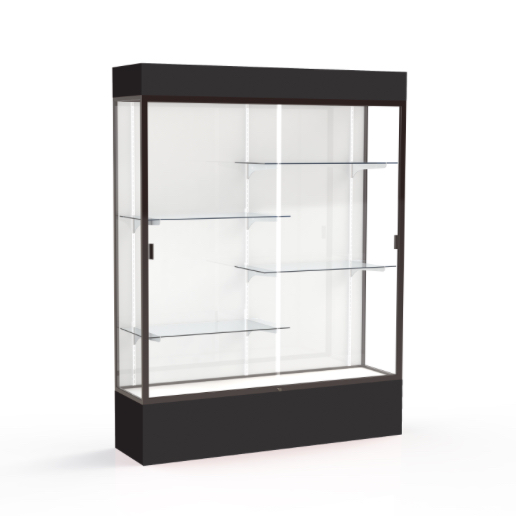 Spirit Black Display Case (Lighted), White Laminate Back w/ Dark Bronze aluminum frame finish, 80"H x 60"W x 16"D (Item #: 3175wb-bz-bk-WD)