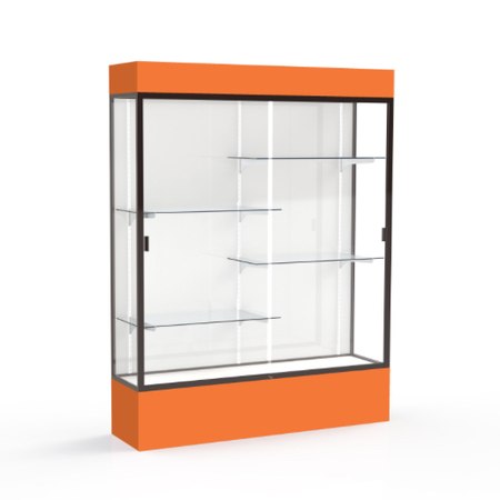 Spirit Orange Display Case (Lighted), White Laminate Back w/ Dark Bronze aluminum frame finish, 80"H x 60"W x 16"D (Item #: 3175wb-bz-or-WD)