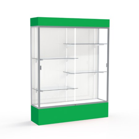 Spirit Kelly Green Display Case (Lighted), White Laminate Back w/ Satin Natural aluminum frame finish, 80"H x 60"W x 16"D (Item #: 3175wb-sn-kg-WD)