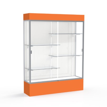 Spirit Orange Display Case (Lighted), White Laminate Back w/ Satin Natural aluminum frame finish, 80"H x 60"W x 16"D (Item #: 3175wb-sn-or-WD)