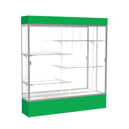 Spirit Kelly Green Display Case (Lighted), Mirror Back w/ Satin Natural aluminum frame finish, 80"H x 72"W x 16"D (Item #: 3176mb-sn-kg-WD)