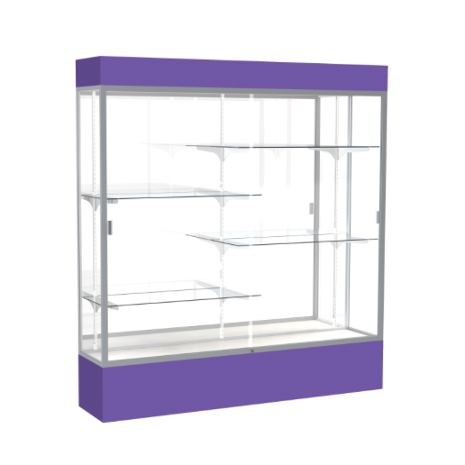 Spirit Purple Display Case (Lighted), Mirror Back w/ Satin Natural aluminum frame finish, 80"H x 72"W x 16"D (Item #: 3176mb-sn-pe-WD)