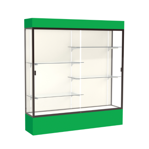 Spirit Kelly Green Display Case (Lighted), Plaque Fabric Back w/ Dark Bronze aluminum frame finish, 80"H x 72"W x 16"D (Item #: 3176pb-bz-kg-WD)