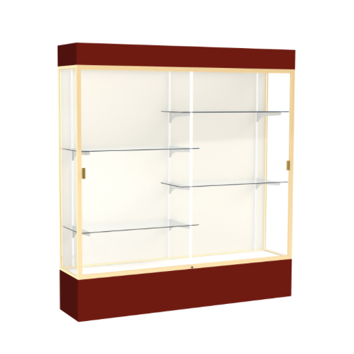 Spirit Maroon Display Case (Lighted), Plaque Fabric Back w/ Champagne aluminum frame finish, 80"H x 72"W x 16"D (Item #: 3176pb-gd-mn-WD)