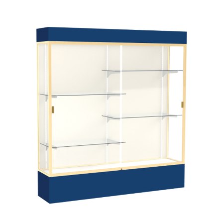 Spirit Navy Display Case (Lighted), Plaque Fabric Back w/ Champagne aluminum frame finish, 80"H x 72"W x 16"D (Item #: 3176pb-gd-ny-WD)