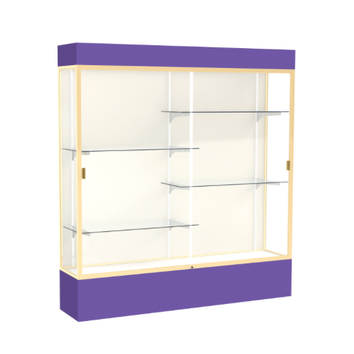 Spirit Purple Display Case (Lighted), Plaque Fabric Back w/ Champagne aluminum frame finish, 80"H x 72"W x 16"D (Item #: 3176pb-gd-pe-WD)