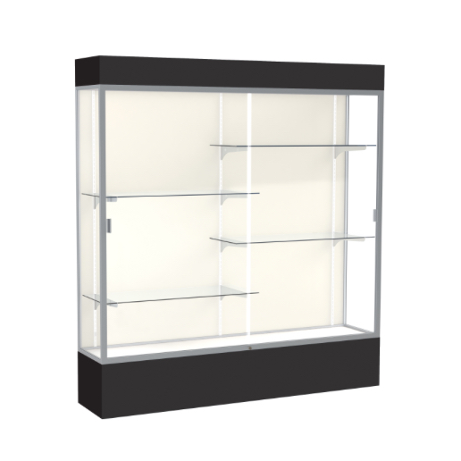 Spirit Black Display Case (Lighted), Plaque Fabric Back w/ Satin Natural aluminum frame finish, 80"H x 72"W x 16"D (Item #: 3176pb-sn-bk-WD)