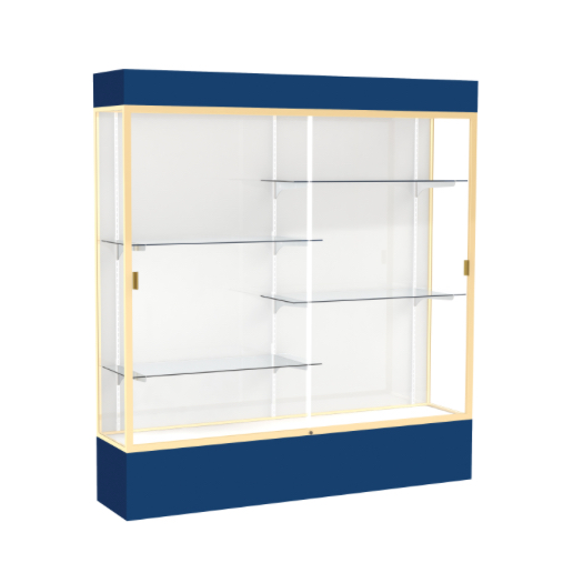 Spirit Navy Display Case (Lighted), White Laminate Back w/ Champagne aluminum frame finish, 80"H x 72"W x 16"D (Item #: 3176wb-gd-ny-WD)