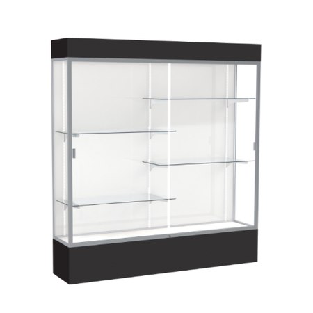 Spirit Black Display Case (Lighted), White Laminate Back w/ Satin Natural aluminum frame finish, 80"H x 72"W x 16"D (Item #: 3176wb-sn-bk-WD)
