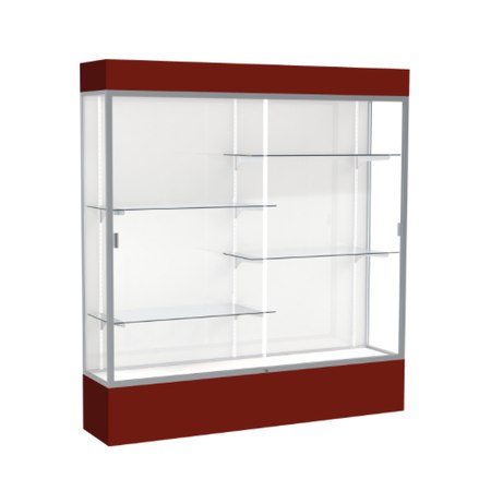Spirit Maroon Display Case (Lighted), White Laminate Back w/ Satin Natural aluminum frame finish, 80"H x 72"W x 16"D (Item #: 3176wb-sn-mn-WD)