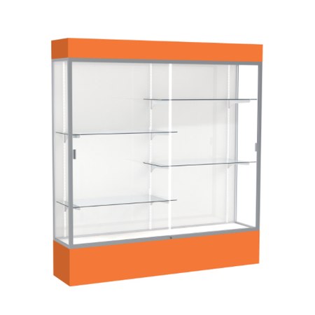 Spirit Orange Display Case (Lighted), White Laminate Back w/ Satin Natural aluminum frame finish, 80"H x 72"W x 16"D (Item #: 3176wb-sn-or-WD)