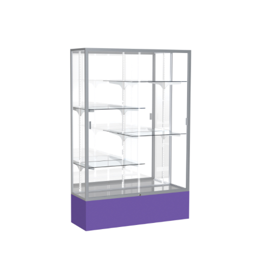 Spirit Purple Display Case (Unighted), Mirror Back w/ Satin Natural aluminum frame finish, 72"H x 48"W x 16"D (Item #: 374mb-sn-pe-WD)