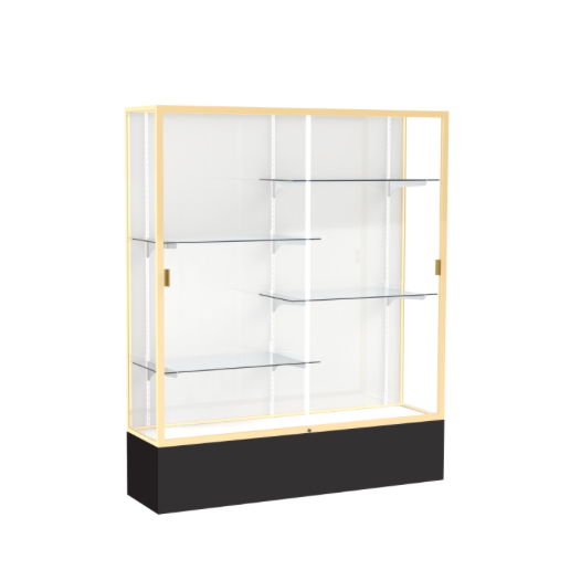 Spirit Black Display Case (Unighted), White Laminate Back w/ Champagne aluminum frame finish, 72"H x 60"W x 16"D (Item #: 375wb-gd-bk-WD)