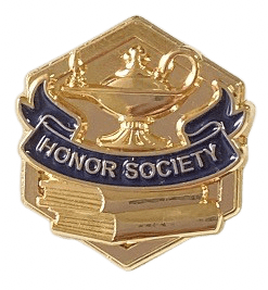 Our unique 3D Series gold enamel lapel pins feature raised lettering (Honor Society) on a dark blue background. The books and academic excellence lamp are also raised, giving the pins a three-dimensional effect. Select an optional display box below. Each pin features a clutch-back and measures approximately 7/8". Minimum quantity: 5. Excellent for academic recognition ceremonies and scholarly achievement. Ships from: Marquette, Michigan. SKU: 3d2-tc.