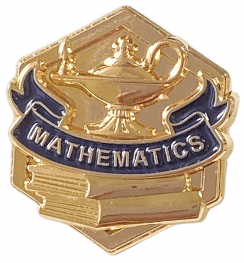 Our unique 3D Series gold enamel lapel pins feature raised lettering (Mathematics) on a dark blue background. The books and academic excellence lamp are also raised, giving the pins a three-dimensional effect. Select an optional display box below. Each pin features a clutch-back and measures approximately 7/8". Minimum quantity: 5. Outstanding for academic recognition ceremonies and scholarly achievement. Ships from: Marquette, Michigan. SKU: 3d1-tc.