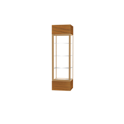 Keepsake Light Oak Vinyl Lighted Display Case w/ Clear Glass back and Champagne Aluminum Frame, 80"H x 24"W x 24"D (Item #: 4124cb-gd-mk-WD)