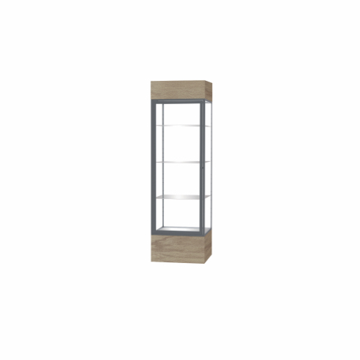 Keepsake Driftwood Oak Lighted Display Case w/ Clear Glass back and Satin Natural Aluminum Frame, 80"H x 24"W x 24"D (Item #: 4124cb-sn-dk-WD)