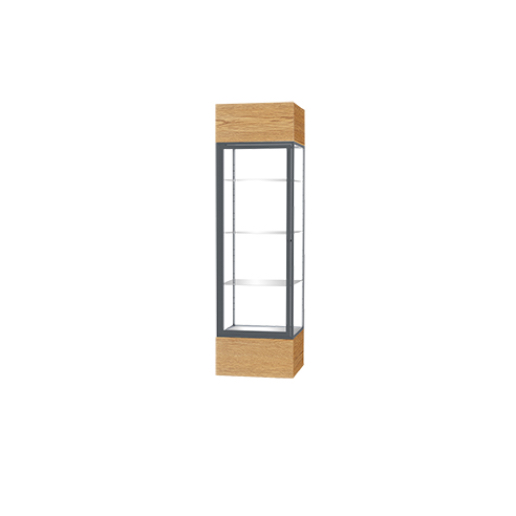 Keepsake Light Oak Vinyl Lighted Display Case w/ Clear Glass back and Satin Natural Aluminum Frame, 80"H x 24"W x 24"D (Item #: 4124cb-sn-lv-WD)