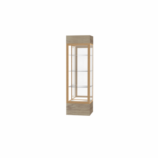 Keepsake Driftwood Oak Lighted Display Case w/ Mirror back and Champagne Aluminum Frame, 80"H x 24"W x 24"D (Item #: 4124mb-gd-dk-WD)
