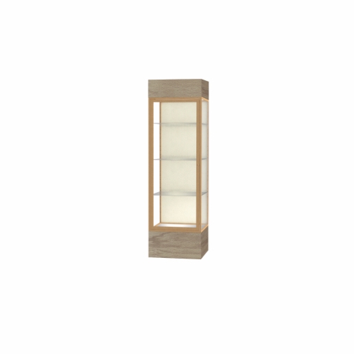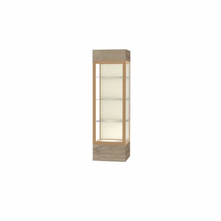 Keepsake Driftwood Oak Lighted Display Case w/ Plaque Fabric back and Champagne Aluminum Frame, 80"H x 24"W x 24"D (Item #: 4124pb-gd-dk-WD)