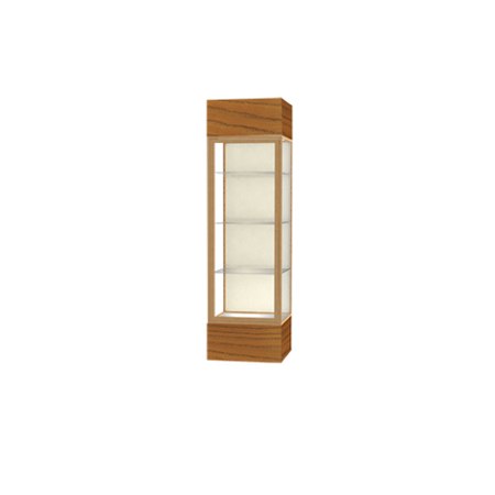 Keepsake Carmel Oak Lighted Display Case w/ Plaque Fabric back and Champagne Aluminum Frame, 80"H x 24"W x 24"D (Item #: 4124pb-gd-mk-WD)