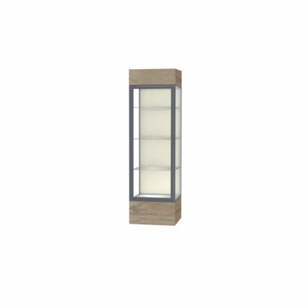Keepsake Driftwood Oak Lighted Display Case w/ Plaque Fabric back and Satin Natural Aluminum Frame, 80"H x 24"W x 24"D (Item #: 4124pb-sn-dk-WD)