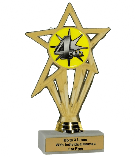 Our economy insert trophy features a real white marble base with a gold insert holder and 2" 4th Place insert. Measures approximately 6 7/8"-7 1/8" tall. Up to three text personalized engraving free, including individual names! A great choice for acknowledging excellence and victory. Ships from: Marquette, Michigan. SKU: 4th-place-e-part-i-tc.