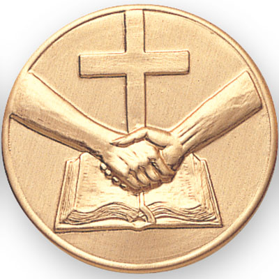 Use this 2 inch Religious Cross Book & Hands insert to create a unique medal using the options below. Religious Cross Book & Hands inserts can also be used in our Insert Trophies, Awards and Gifts. Magnificent for honoring excellence and victory. Ships from: Mount Vernon, New York. SKU: 507490-cm.