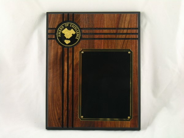 Genuine Walnut Plaque with a 2 Inch Award Of Excellence Insert. Our Award Of Excellence plaque measures 10" x 12" and has a beautiful walnut finish. Use our personalization wizard to add your personalized engraving and create your own special design. Price includes text personalized engraving (optional logo also available)! A great choice for acknowledging excellence and victory. Ships from: Mount Vernon, New York. SKU: ps5894-51-8185-cm.