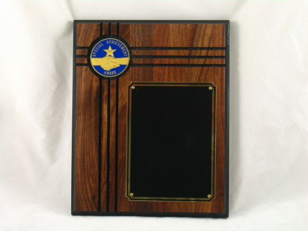 Genuine Walnut Plaque with a 2 Inch Special Achievement Award Insert. Our Special Achievement Award plaque measures 10" x 12" and has a beautiful walnut finish. Use our personalization wizard to add your personalized engraving and create your own special design. Price includes text personalized engraving (optional logo also available)! Magnificent for honoring excellence and victory. Ships from: Mount Vernon, New York. SKU: ps5894-51-8288-cm.