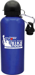 Blue BPA Free aluminum bottles have a pop-top dome lid and free twist on lid. Water bottles include stainless steel clip that attaches to book bags, backpacks, etc. Holds 20 oz. The price of these bottles Includes a one-side, one-color imprint! SKU: 51084-gla.