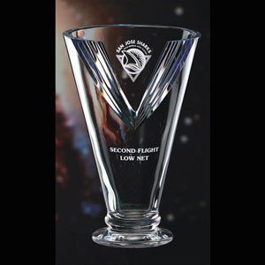 Introducing a trophy cup that is truly a cut above! Our Victory Cup flashes the universal V for victory in a way that cannot be ignored. Mouth-blown and cut by hand, this radiant prize is crafted of very heavy full-lead crystal. For aesthetics we recommend your award inscription and logo positioned as shown. Due to the handcrafted nature of this piece, please expect small bubbles, etc. will occur. Available in 3 sizes. Small measures 8.5 inches H x 5.5 inches W. Etch area: Logo: 1.5 inches H x 1.5 inches W Copy: 1.75 inches H x 2 inches W. Medium measures 9.5 inches H x 6 inches W. Etch area: Logo: 1.75 inches H x 1.75 inches W Copy: 2 inches H x 2.25 inches W. Large measures 11 inches H x 7 inches W. Etch area: Logo: 2 inches H x 2 inches W Copy: 2.25 inches H x 2.5 inches W. PA wonderful choice for rewarding excellence and victory. SKU: 53xx-jc.