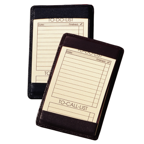 Top grain Nappa cowhide pocket jotter with ten Things To Do cards and large side pocket for storing extra note or business cards. Measures 5 1/2 x 3 1/2 x 1/4.