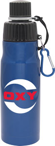 These Blue Mountaineer Collection Water Bottles feature single wall food grade 18/8 stainless steel. Price includes a color coordinated carabiner and a one-color, one-side imprint. Simply send your logo or artwork to sales@trophycentral.com. Holds 20 oz. Ships from: Aliquippa, PA. SKU: 71084-gla.