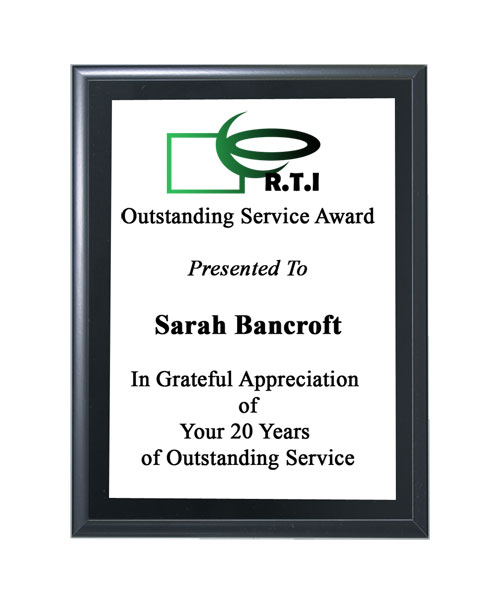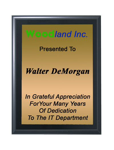 7" x 9" Black Matte Finish Wall Plaque with Gold or White Plate and Black Text. Optional Sublimated Logo is in Full Color. Includes up to 16 lines of personalized engraving & up to 30 characters (including spaces) per line. Ships from: Marquette, Michigan. SKU: 7x9blackfinish-qt.