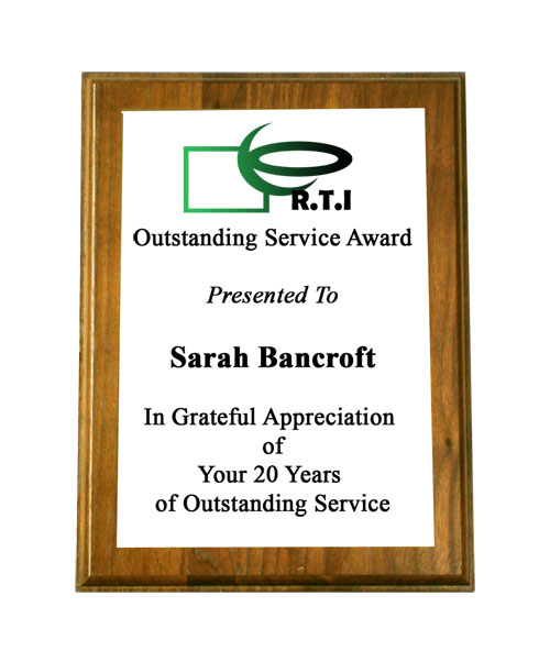 7" x 9" (Vertical) Solid Walnut Plaque with Gold or White Plate and Sublimated Black Text. Optional Sublimated Logo is in Full Color. Includes up to 16 lines of personalized engraving & up to 30 characters (including spaces) per line. Ships from: Marquette, Michigan. SKU: 7x9walnutsolid-qt.