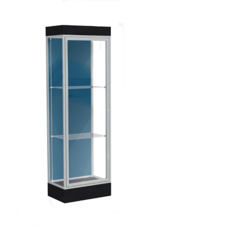 Edge Lighted Floor Display Case, 6" Black Base w/ Blue Steel Back and Satin Natural Aluminum Frame, 76"H x 24"W x 20"D (Item #: 91lfbs-sn-bk-WD)