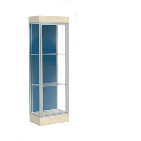 Edge Lighted Floor Display Case, 6" Beigewood Base w/ Blue Steel Back and Satin Natural Aluminum Frame, 76"H x 24"W x 20"D (Item #: 91lfbs-sn-cd-WD)