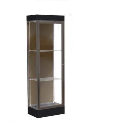 Edge Lighted Floor Display Case, 6" Black Base w/ Chocolate Back and Dark Bronze Aluminum Frame, 76"H x 24"W x 20"D (Item #: 91lfco-bz-bk-WD)